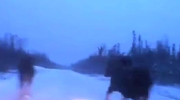 Автомобиль на огромной скорости проскочил между двумя лосями: видео