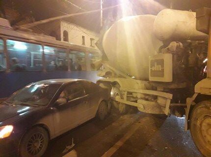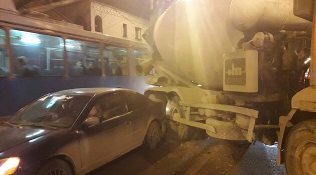 В Краснодаре бетономешалка догнала тормозившую на светофоре Хонду