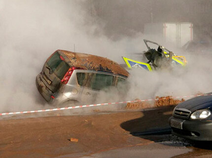 В Петербурге десятки автомобилей залило кипятком из-за прорыва трубы