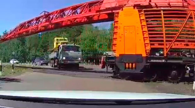 Разбился по глупости: поезд краном перевернул КамАЗ с трактором в Иркутске