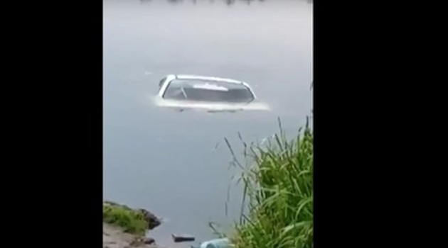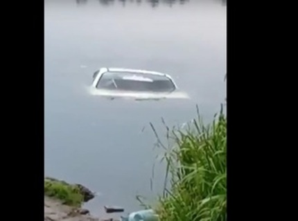 Утром из озера Пеньковое на ул. Коммунистической спасатели достали автомобиль (видео)