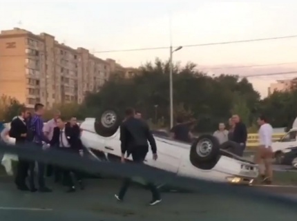 «Свадьба удалась». Машина кортежа молодоженов перевернулась в Ростове‐на‐Дону