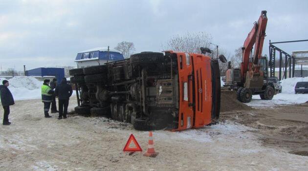 В Кирове на улице перевернулся «КамАЗ» с песком