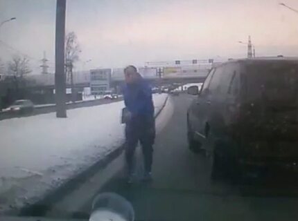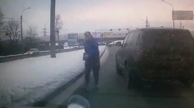 "Учитель" на Range Rover ногой снес зеркало мешавшей ему легковушки