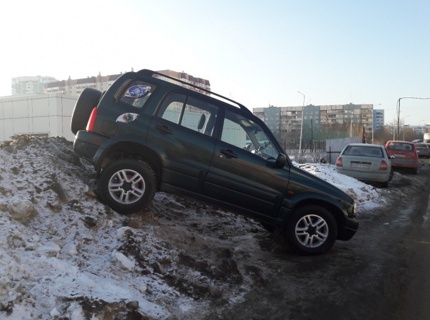 В Самаре водитель Suzuki припарковал свой внедорожник на сугробе