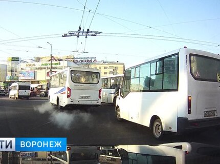 В Воронеже на видео попало, как 5 маршруток «боролись» с конкурентами перед светофором