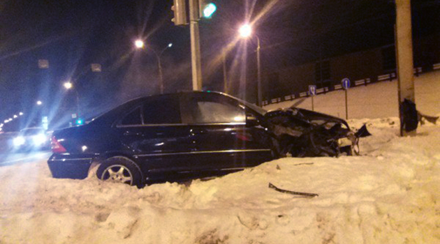 «Мерседес» взлетел на бордюре, как на трамплине, и врезался в столб