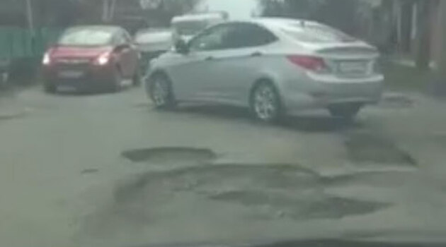 Водитель из Краснодара показал на видео гигантские ямы на дорогах города