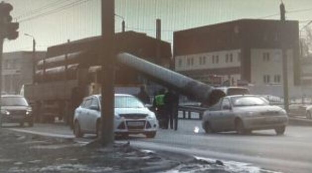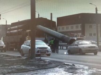 На дороге в Челябинске труба придавила легковушку, выпав из КамАЗа