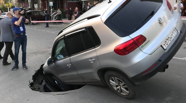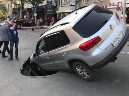 В центре Ростова иномарка встала на дыбы из-за провала в земле