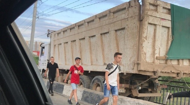 На юге Волгограда самосвал из Ставрополя вылетел на пешеходную зону