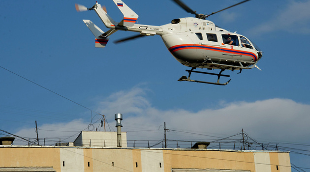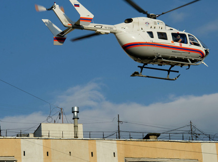 Вертолет эвакуирует пострадавшего в ДТП на юге Москвы