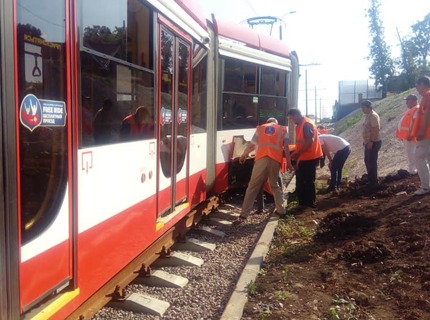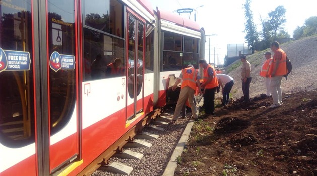 «К стадиону невозможно подъехать»: в Самаре сошел с рельсов трехсекционный трамвай-шаттл