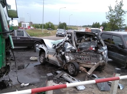 Грузовик смял шесть машин на железнодорожном переезде в Новомосковске. Видео