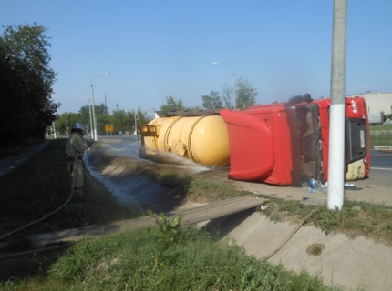 В Чувашии на трассе М7 перевернулась цистерна с соляной кислотой