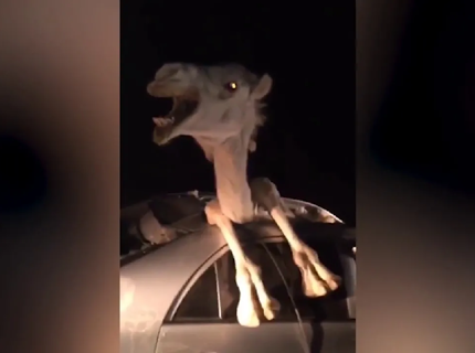 Не спрашивай меня как: застрявшего в машине верблюда засняли на видео