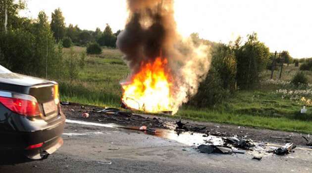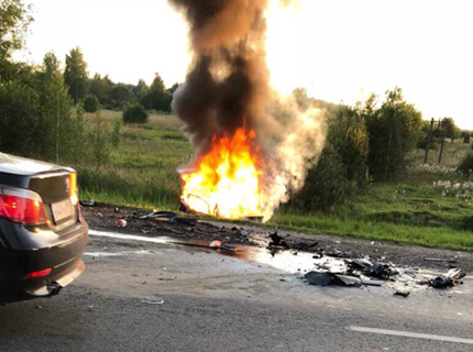 Страшная авария под Ярославлем: после столкновения легковушка вспыхнула