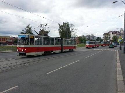 Из-за столкновения мотоциклиста и автомобиля на ул. Красноармейской вставали трамваи