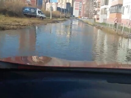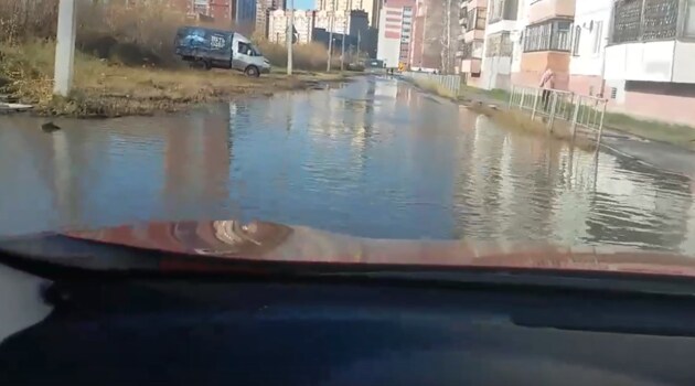«Машины глохнут и теряют номера». Жители улицы Энергостроителей добираются домой через огромную лужу