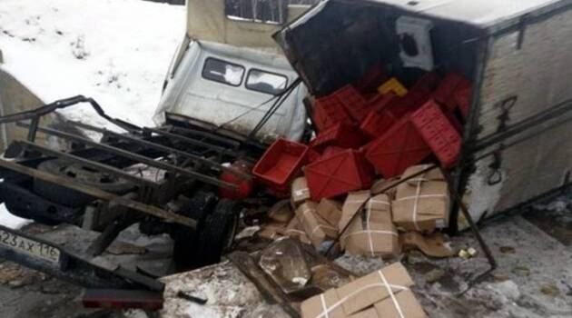 После ДТП на М7 рассыпалась грузовая «Газель» с колбасой