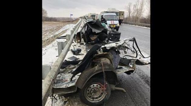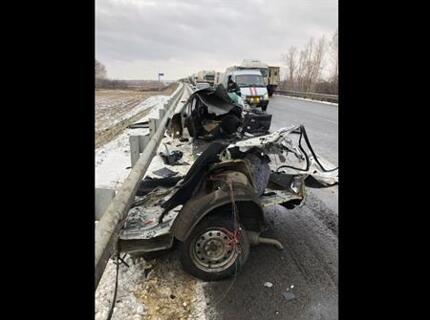 Lada Granta разорвало на две части после столкновения с большегрузом MAN