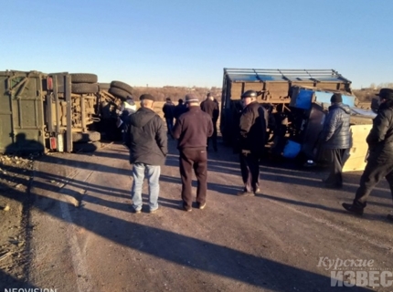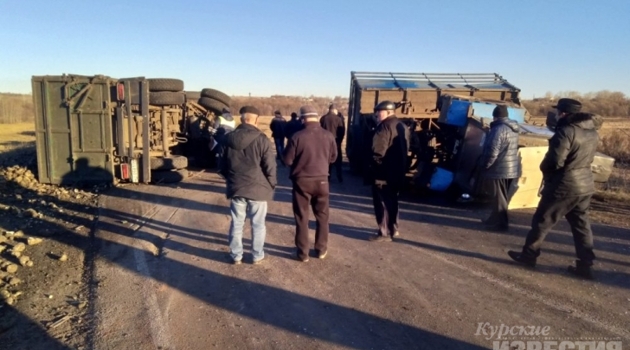 Курская область. На трассе после ДТП перевернулись грузовик и трактор