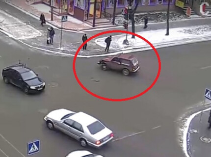 Странный маневр совершил водитель автомобиля «Нива» в Петрозаводске