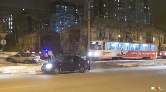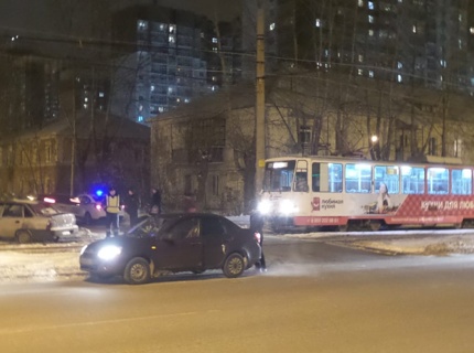 На Вторчермете водителю трамвая пришлось вытаскивать с путей автомобиль, который мешал проехать