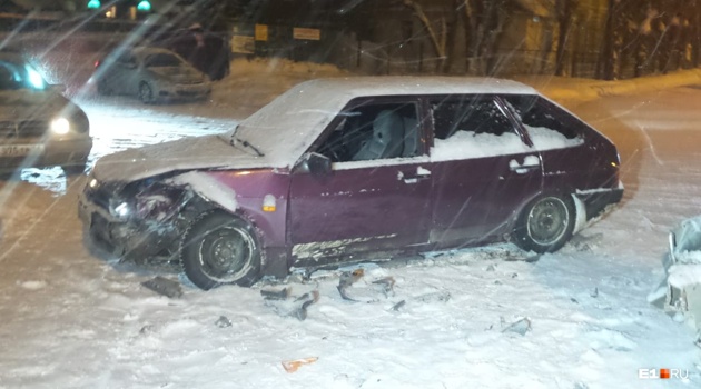 В Екатеринбурге два ВАЗа после столкновения отбросило на тротуар