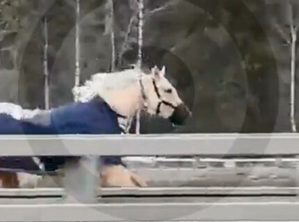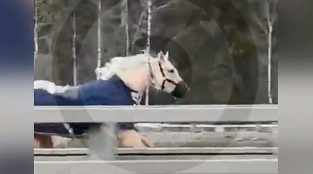 Очевидцы сняли на видео лошадей, бегущих по Минскому шоссе в Москве