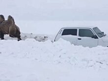 В Саратове верблюд спас из снежного плена Ниву. ВИДЕО