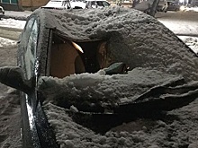 На платной парковке в Рязани ещё один автомобиль повредила глыба льда
