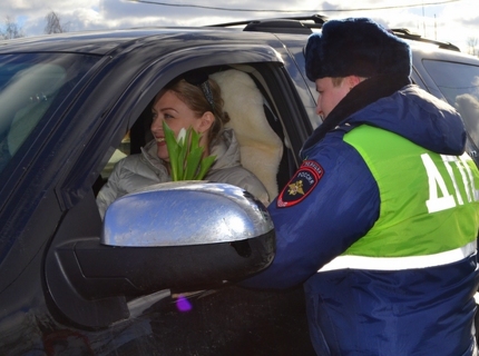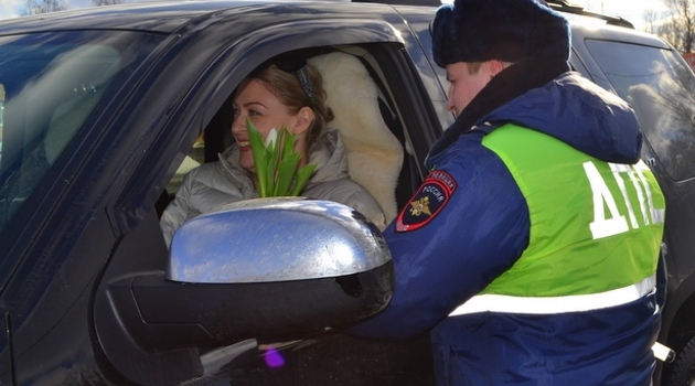 Инспекторы ДПС вручили зеленоградским автоледи цветы