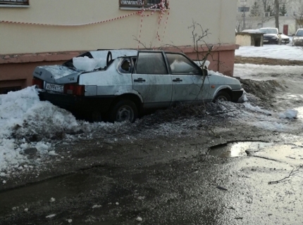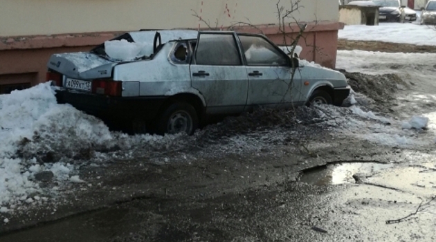 Глыба льда раздавила машину в Сарове