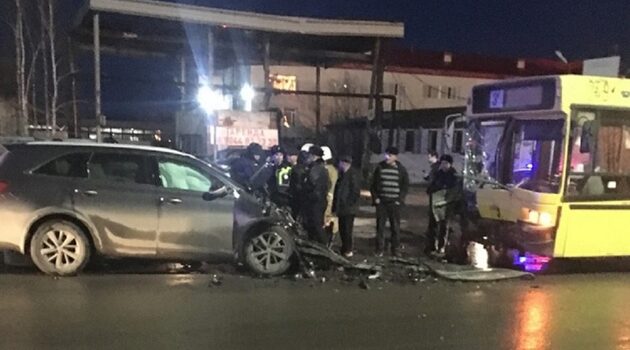 В Нефтеюганске водитель внедорожника погиб в столкновении с автобусом
