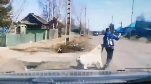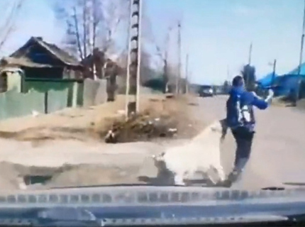 Спасли от зубов гигантского пса: нападение агрессивной собаки на школьника попало на видео
