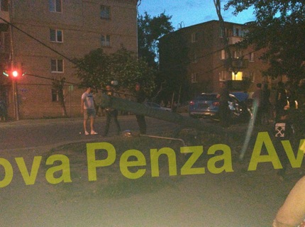 В Пензе на ул. Металлистов «Мерседес» снес столб