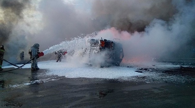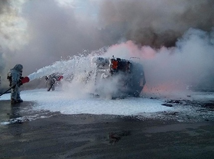Загоревшийся бензовоз перекрыл трассу под Курганом: видео