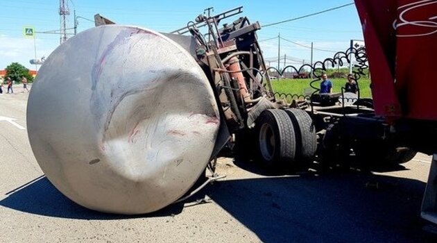 На Кубани грузовик врезался в "Жигули" и потерял цистерну