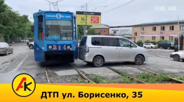 Трамвай протаранил иномарку во Владивостоке
