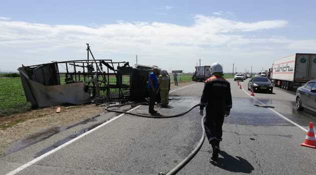 Две грузовые машины столкнулись на трассе в Краснодарском крае из-за осы