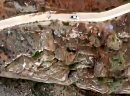 В Китае водитель упал со 150-метровой скалы, но он выжил, повиснув на дереве. Видео