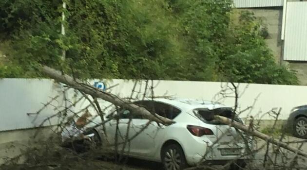 В Кисловодске дерево упало на крышу автомобиля