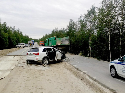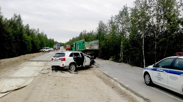 Два человека пострадали при столкновении легковушки и грузовика на трассе в ЯНАО. ФОТО