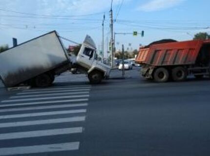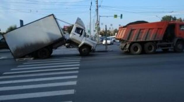 Грузовик сложился пополам на крупном перекрестке левого берега Новосибирска
