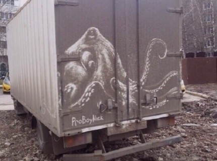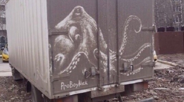 Неизвестный художник рисует шедевры на грязных авто нижегородцев