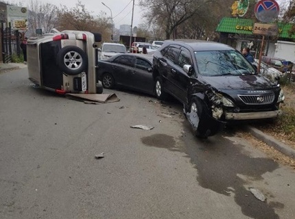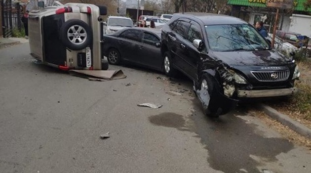 Внедорожник завалился набок в массовом ДТП во Владивостоке