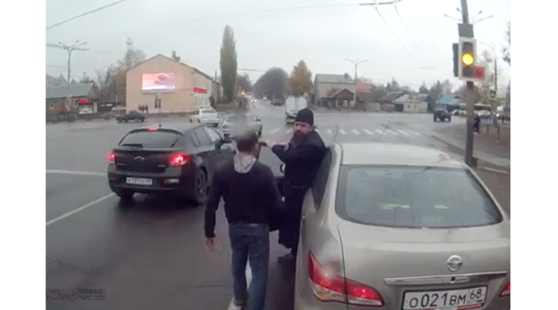Танк проехался по городу и врезался в легковушку