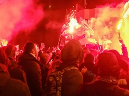 Большая группа людей с нацистскими символиками прошла по центру Санкт-Петербурга