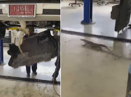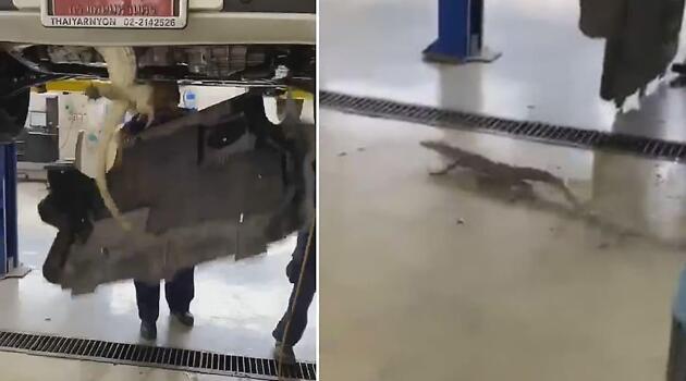 Тайские механики вызволили из заточения варана, спрятавшегося под двигателем автомобиля